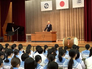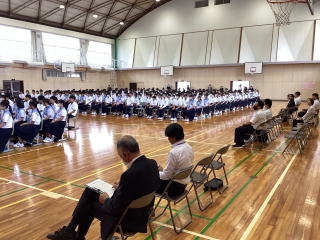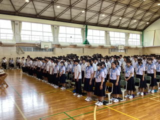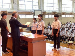 本日、4時間目、体育館に全校生徒が集まり前期終業式が行われました。各学年の代表生徒が前期を振り返っての思いを発表しました。 |
