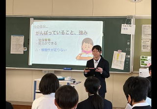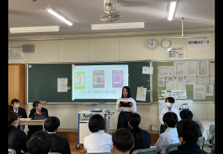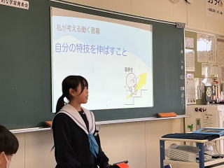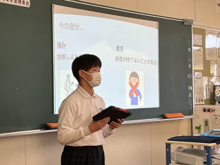 2時間目から4時間目に総合的な学習の発表会を行いました。これまでの総合的な学習の時間において考えた働くことの意義や職業人と語る会を通して学んだことなどについてまとめたことを発表する機会となりました。各教室では、保護者の方々にも参観いただき、生徒たちはタブレットとプロジェクターを活用しながら真剣な表情で発表を見事にやり遂げました。