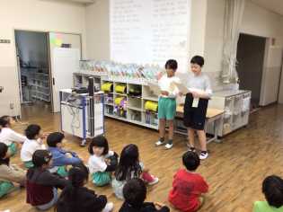 「なにに見えるかな」では、形を見て考え、「かわいいさかなに見えます」など、それぞれが連想したこと発言していました。 |