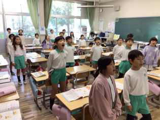 すてきな歌声に誘われて、教室を見に行くと、大きな口を開け、元気に歌っていました。みどりっ子フェスタでは、全校合唱を披露します♪ みどりっ子のすてきな歌声をお楽しみに♪ |