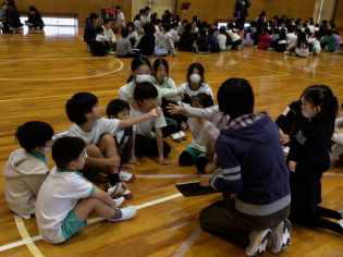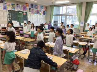 1年生の教室では、カタカナや漢字の学習、3年生の教室では、「サーカスのライオン」、5年生の教室では、「注文の多い料理店」と学年に応じた内容の授業を行っていました。
