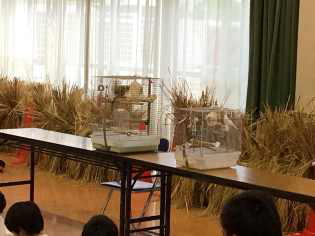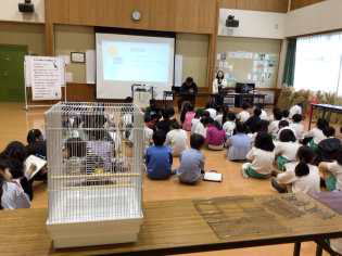 鳥かごで有名なHOEI様に来校していただき、出前授業を受けました。本物の鳥が入った鳥かごまで持参していただき、子どもたちに分わかりやすく、丁寧に説明していただきました。 |