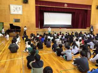 食育の一環として、(株)明治の方を講師としてお招きし、「丈夫な体づくり」について学びました。牛乳やヨーグルト、オレンジジュウスなどに含まれるカルシウムの量を聴き、「ええ!」「そうなんだ」と新しい発見をしていました。どんな朝ごはんがよいのかを考える活動もありました。朝ごはんと栄養バランスの大切さを知り、望ましい食習慣を身に付けるために、子どもたちに分かりやすく説明していました。参観されたお家の方も、うなずいていました。 |