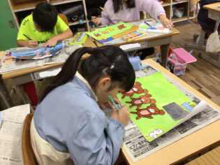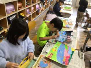 絵具を使って絵を仕上げていました。夢中になって取り組んでいる姿が素敵でした。