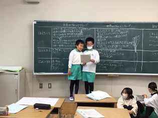 家庭科では、「調理実習ではどのお米を使いたいですか」とさまざまな情報を基に考える授業を行いました。タブレットを準備するときも片付けるときも静かに動いたり、発言する友達の方に顔を向けて一生懸命に聞いたり、当たり前のことかもしれませんが、学級のよさをたくさん発揮していました。米を選ぶ基準も、それぞれの思いがあり、大変興味深い授業でした。