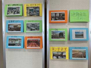 昇降口には、第3回避難訓練のために考えた避難の仕方についてのパネルが掲示してあります。 |
