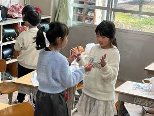 「おかわりがほしい!」と言っている児童も多く、苗植えや稲刈りなど米作りのごく一部しか関わっていないものの、自分たちが育てたおいしいもち米だという思いがあふれ出ていました。中には、「米一粒も残さないようになりました」と米に対する見方や考え方が変わったことを発言する児童もいました。