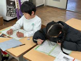 「かんじのたしざんをしよう」というめあてで、友達と協力しながら漢字を探し出して、一生懸命に書いていました。顔を寄せ合って学習している姿がすてきです♪ |