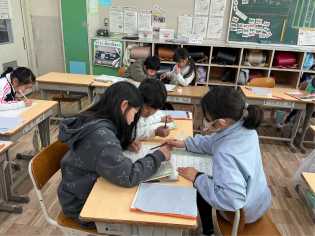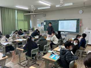 2026年の初日ですが、普段の学校の景色が戻ってきました。写真は、1・2年生の書写、1年生の生活、5年生の国語、6年生の社会です。
