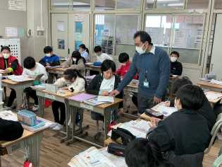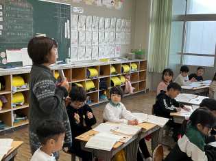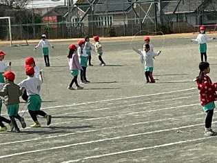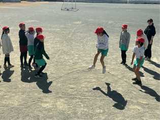 日差しの割には、少し冷たく感じる天候のもと、1年生は、個別に縄跳びの練習に励んでいました。4年生はクラス全員で長繩跳びにチャレンジしました。どちらの学級も跳べたときには、喜びを分かち合い、跳べなかったときには、励ましの声が飛び交っていて、春の日差しのように温かい雰囲気で活動していました♪ |