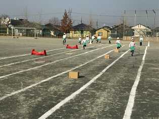 運動場では、障害物リレーをしていました。日差しも暖かったですが、何よりチームの仲間を応援する声が温かかったです♪