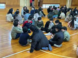 朝の時間に、体育委員会が企画した「なかよし集会」を実施しました。インフルエンザなどの流行で延期になっていた集会をようやく行うことができました。けがなく、安全に楽しめるように考えて、全校で「もうじゅうがり」を行いました。