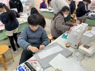 まだ仮縫いをしている子やミシンで縫い始めている子など、それぞれのペースで取り組んでいました。