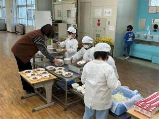 2年生に進級する日もどんどん近づいてきましたが、給食の配膳するのも、4月と比べると大変上手になりました。
