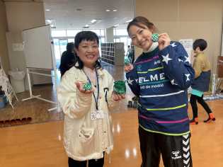 手作りアクリルたわしをご寄付いただいた地域の方も参加して交流することができました。