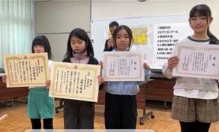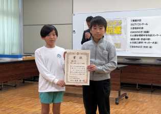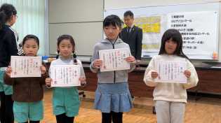 表彰対象者が多勢いたため録画をして、各学級で視聴することになりました。今回は、作品募集の家庭の日、人権を理解する作品コンクール、みかわの子(絵画・作文・詩)、ピアノコンクール、サッカー大会などで優秀な成績を収めた児童が対象となりました。練習、本番と2日間かけて録画しましたが、どの児童も凛とした返事と動作で、りっぱな姿を見せていました。