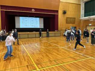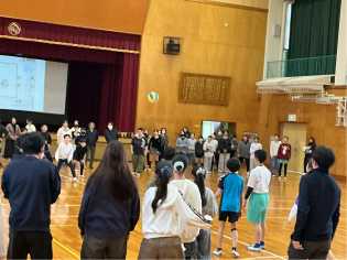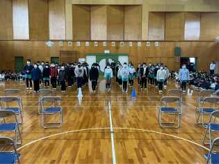 冷たい空気に包まれた体育館では、1年生の元気な声が響いていました。