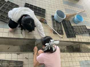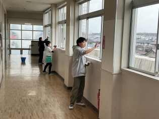 普段は手が届かないのであきらめていた窓の高いところや、昇降口の溝の中、数えきれないくらい歩いた廊下など、6年間の思い出に浸りながら隅々までぴかぴかにしました♪