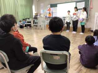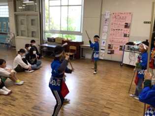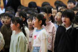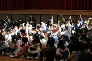 3~6年生は、目の前に他の学年の子がいることで緊張する子もいましたが、練習の成果を発揮しようとがんばっていました。1・2年生は感染それぞれの学年で互いの発表を見合いました。