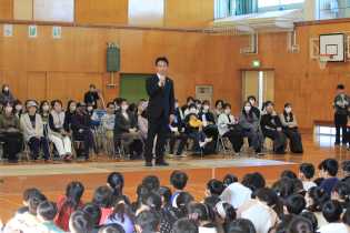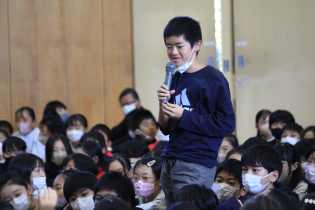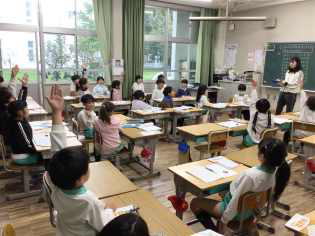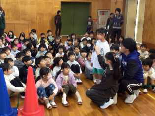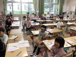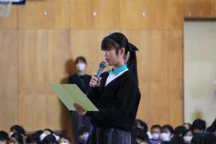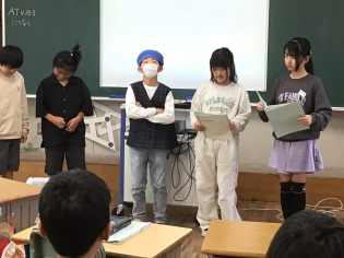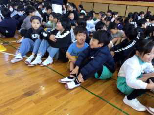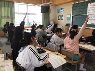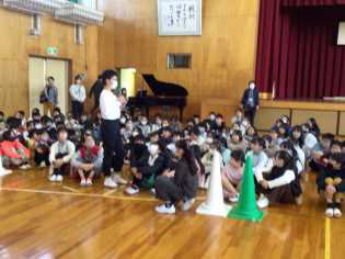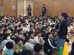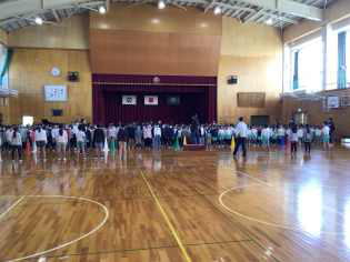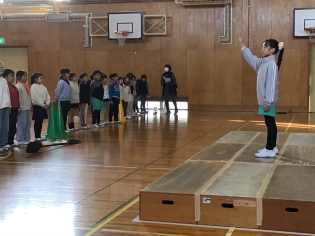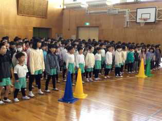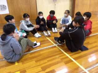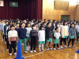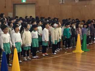 練習の最後には、定番の振り返りをしました。ペアで行った後、各学年の代表者が振り返りを述べました。全校の前でも自分から手を挙げ、りっぱに話す姿はすてきでした🎵 |
