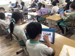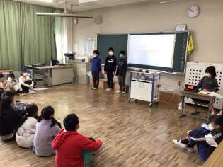 今日は、拡大防止のため、体育館に全校児童が集まってのオープニングやエンディングは行いませんでしたが、各学年の見どころを発表する「コマーシャル」をリモートで行うなど予定を変更して行いました。全校のすばらしい歌声は、当日の楽しみにとってあります♪ オープニング後は、各学年フロア(6年生はホール)でみどりっ子フェスタの校内発表を行いました。
