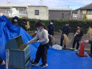 地域のデイケアに通っていらっしゃる方々から心のこもった手縫いの雑巾を寄付していただいたり、5年生の稲の脱穀では、貴重な人力脱穀機を貸していただき、5年生の2クラスが脱穀をした後も残ってくださり、お昼までに全ての稲の脱穀をしていただいたり、交流する機会がたくさんあった1日でした。地域の方々との温かいつながりを感じることができ、心がほっこりし、温まりました。