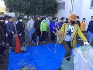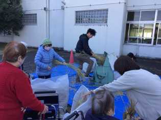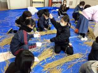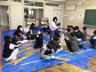 【5年生しめ縄飾りづくりのための準備の様子】 |
