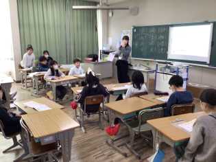 理科「土地のつくりと変化」の学習では、講師の先生をお招きして学びました。1500万年前には、この辺りまで、瀬戸内海から海がつながっていたことを知り、驚いていました。また、礫、砂、泥や化石などを実際に触ったり、標本づくりにも取り組んだりしました。 |