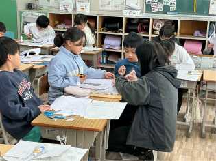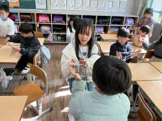 理科の学習では、「ふりこの実験」を行っていました。糸の長さを正確に測って、実験結果が正確に出るように真剣そのものでした。仲良く協力しながら実験に取り組む様子からも、成長を感じました。 |