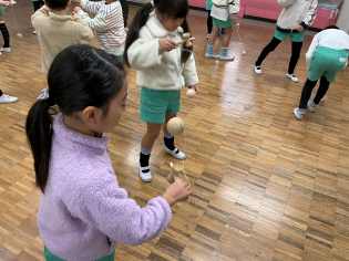 生活科の学習では、昨日初めてこま回しを経験した子が、二日目には上手に回せるようになるなど、子どものもっている力に驚かされました。