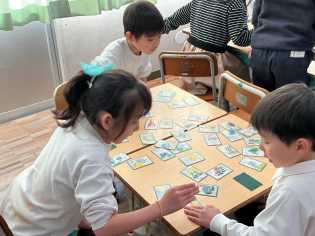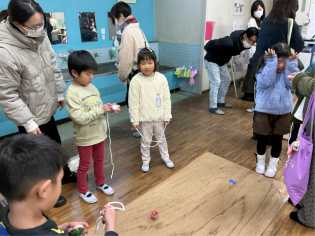 けん玉やあやとり、いろはカルタなど昔から伝わる遊びに夢中になっていました。子どもたちが楽しみながら、伝承していってくれることがうれしいです♪ |