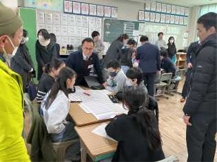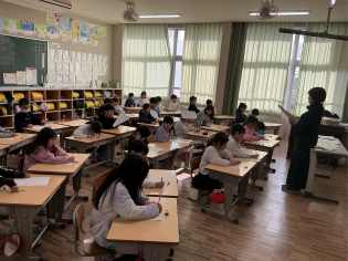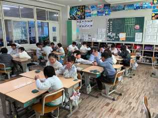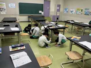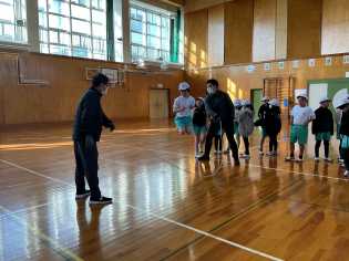 好天に恵まれ、温かい天候での避難訓練になりました。今回は、昼休みに地震が発生したケースで訓練を行いました。運動場で遊んでいた子どもたちも、急いで安全な場所にしゃがみ、自分の身を守る行動をしていました。訓練後に教室に戻ると各学級に6年生が行き、事後の振り返りを行いました。6年生からは、「避難訓練に点数をつけると□点と□点しかありませんが、何点でしょうか」と後輩たちに質問して、振り返りを締めくくっていました。