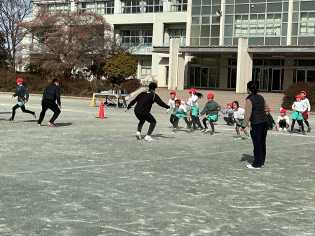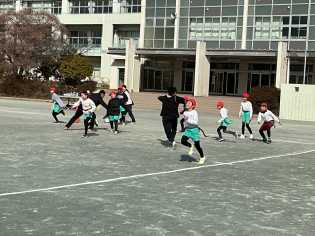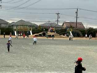 強い風はありませんでしたが、どんよりとしたした曇り空の下、冷えた空気に包まれながら、元気に運動場で遊ぶみどりっ子がたくさんいました。