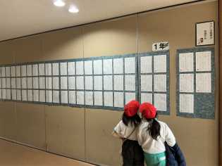 校内書き初め大会で、真剣に取り組んだみどりっ子たちの作品を展示しています。一人一人の練習の成果と集中力が作品として現れています。また、市審査会で選ばれた金賞・銀賞・銅賞(毛筆)、特選・入選(硬筆)、校内入選も、発表されました。