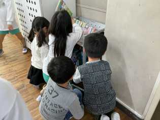 帰りの支度をする時間に、自分のことを終え、みんなのために活動する子どもたちの姿がありました。学級文庫の本を向きや本の高さも考えて、きれいにそろえていました。とてもすてきです。 |