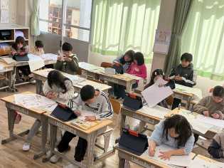 【校内書き初め大会の様子】