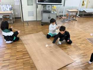 「豆電球に明かりをつけてみよう」というめあてで実験の準備をしました。わくわくする気持ちを抑えて、説明をじっくり聴いている姿がすてきでした。 |