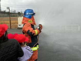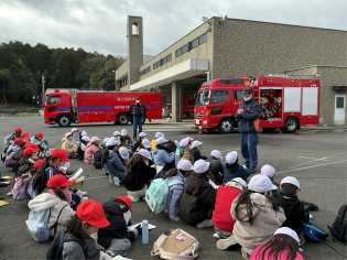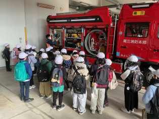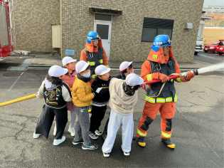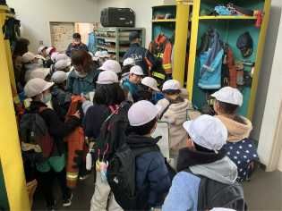 社会科の学習の一環として、寒波が押し寄せている最中でしたが、消防署の見学に元気よく出かけていきました。放水体験をしたり、消防車に積載されている道具を見せていただいたり、消防服を見せていただいたりするなど貴重な体験をしてきました。消防署があることで、私たちが安心して暮らせることができていることを実感し、より身近になったのではないでしょうか。 |
