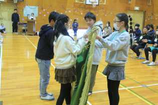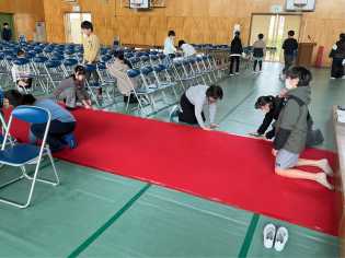 昨日、6年生を送る会で大活躍した5年生が、がんばって卒業式の会場づくりをしました。