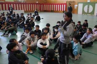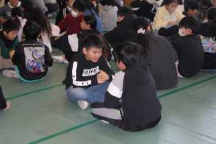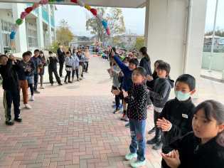 2月初めから、全校で楽しむ活動に取り組みたいと考えた6年生が、企画しました。はじめの企画の段階では、どんなことを、どんなふうにするのか…、安全上…、全員で取り組むには…、全児童で楽しむには…、時間は…、役割分担は…、などなど、6年担任や教頭、校長からたくさんの意見を受け、何度も持ち帰って、また6年生で話し合い、アイデアを出し合い、本日の実施へと進めてきました。