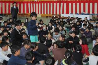 卒業式に向けた練習では、2から5年生をお手本にして、がんばっています。