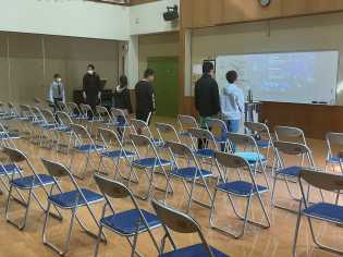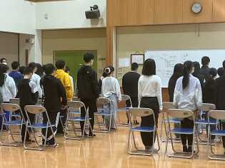 今週から3月となり、卒業式に向けて、ホールで練習し始めました。体育館の卒業生席の並びで座り、昨年度の卒業式の動画を見ながら、動きを確認しました。実際に動いてみることから練習が始まりました。 |