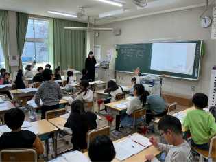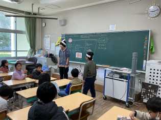 送る会のことだけでなく、学習もがんばっています。社会科「環境を守るわたしたち」の学習では、「鴨川(京都市)の変化について話し合おう」というめあてで学びました。教科書の内容をもとに、自分なりに考えたことを伝え合い、話し合いました。 |