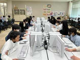 コンピューター室がまるでどこかの会社のオフィスのように静寂の中で、キーボードをたたく音しか聞こえないくらい集中してプレゼン資料作りをしていました。一人一人の個性あふれる作品が生み出されていました♪ |