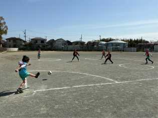 ねらった通りに蹴ることができない子もいましたが、みんなで仲良く楽しみました。 |