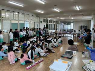 音楽科の学習では、「みんなで気持ちを合わせて歌おう」というめあてで、「こぐまの2月」「はるがきた」などを歌ったり、演奏したりしました。電子ピアノや、木琴、鍵盤ハーモニカも使って、みんなで気持ちを合わせて、楽しく演奏していました。 |