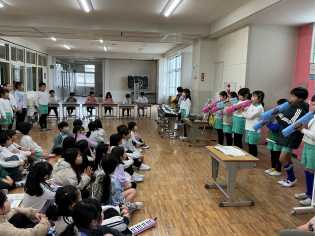 学年全員で音楽発表会を行いました。今までの成果を発揮して、たくさんの拍手を浴びていました♪ |