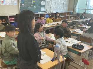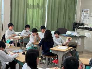 国語科「世界一美しいぼくの村」の学習では、めあて「子羊にバハールとつけたヤモの気持ちを考えよう」について、教材文第4場面、第5場面から読み取りました。兄が帰ってくるはずの春を待ち遠しいという思いに気付きました。