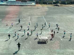 風の強い日になりましたが、体育科の学習では、元気にボールあそびをしました。