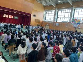 今日までは、卒業生と在校生と別々に練習してきましたが、初めて全校がそろって卒業式の予行練習を行いました。このメンバー(全校児童)で歌う校歌を聴けるのもあと一回です。